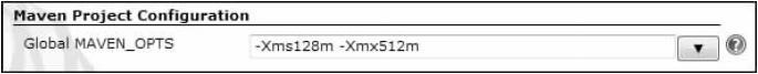 还可以在该页面配置MAVEN_OPTS环境变量,如图11-9所示。关于MAVEN_OPTS环境变量的具体解释可参看2.7.1节。