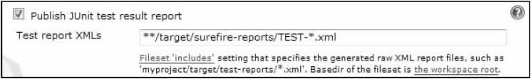 该表达式表示匹配任意目录下target/surefire-reports/子目录中以TEST-开头的XML文件,这也就是匹配所有maven-surefire-plugin生成的XML格式报告文件。配置如图11-27所示。