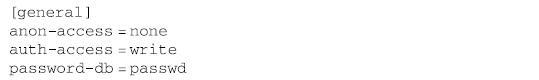 首先,编辑Subversion仓库下conf/svnserve.conf文件中的[general]小节如下:
