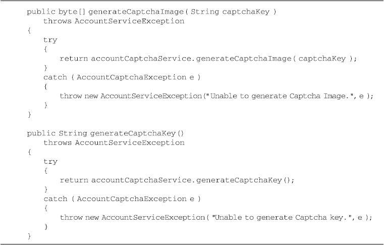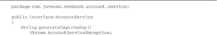 AccountServiceImpl.java借助accountCaptchaService实现验证码的标识符生成及验证码图片生成,如代码清单12-5所示。