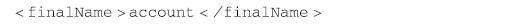 在一些Web项目中,读者可能会看到finalName元素的配置。该元素用来标识项目生成的主构件的名称,该元素的默认值已在超级POM中设定,值为${project.artifactId}-${project.version},因此代码清单12-8对应的主构件名称为account-web-1.0.0-SNAPSHOT.war。不过,这样的名称显然不利于部署,不管是测试环境还是最终产品环境,我们都不想在访问页面的时候输入冗长的地址,因此我们会需要名字更为简洁的war包。这时可以如下所示配置finalName元素: