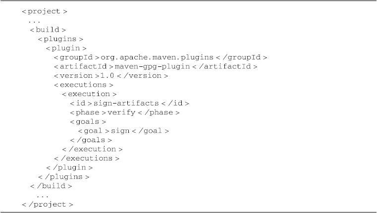 在使用Maven GPG Plugin之前,首先需要确认命令行下的gpg是可用的,然后如代码清单13-5所示配置POM。