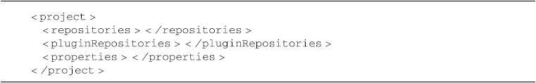 现在不用担心POM外部的profile会对项目产生太大的影响了,事实上这样的profile仅仅能用来影响到项目的仓库和Maven属性。