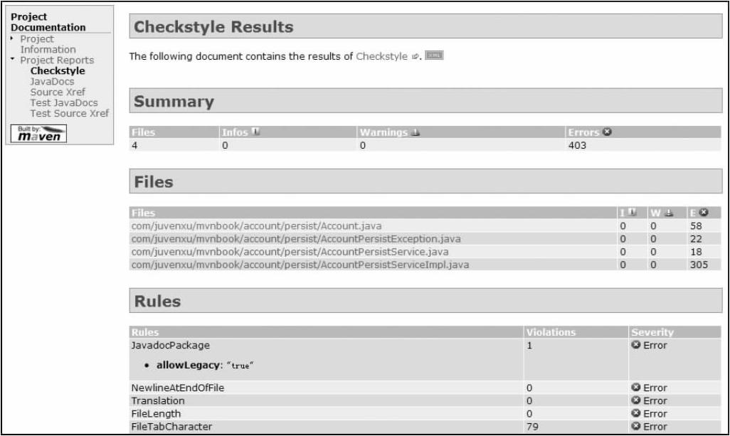 运行mvn site命令后,就能得到图15-7所示的CheckStyle报告。