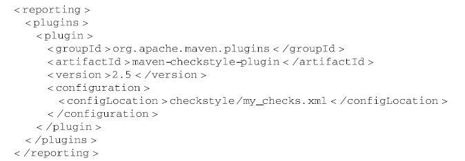 要让Maven在站点中生成CheckStyle报告,只需要配置maven-checkstyle-plugin,如代码清单15-6所示。