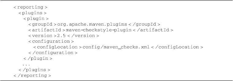 用户可以配置maven-checkstyle-plugin使用上述编码规范,如代码清单15-7所示。