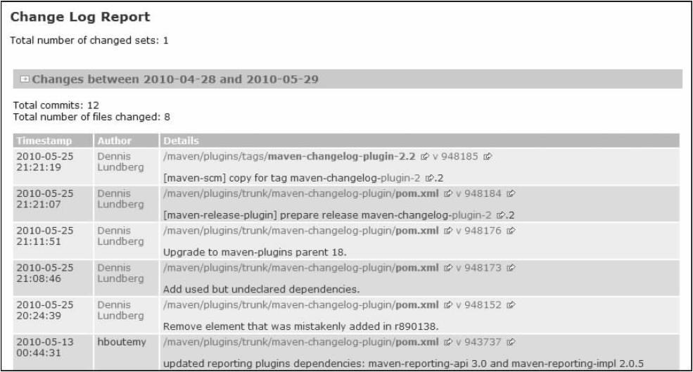 有了SCM配置,就可以配置maven-changelog-plugin生成变更报告。如下: