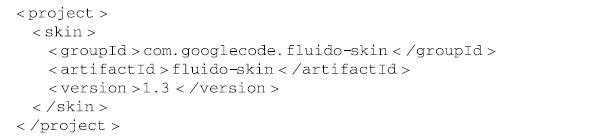 下面就以fluido-skin为例,配置站点皮肤。编辑site.xml如下: