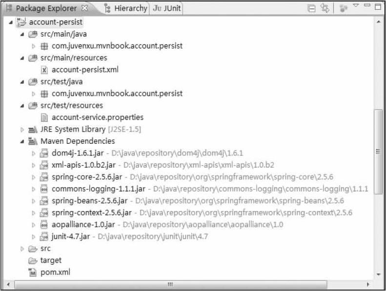 一个典型的Maven项目在m2eclipse中的结构如图16-8所示。