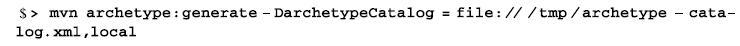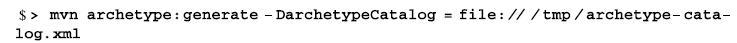 当用户运行mvn archetype:generate命令的时候,可以使用archetypeCatalog参数指定插件使用的Catalog。例如:
