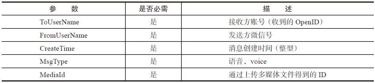 公众号回复的语音消息的参数及描述如表4-9所示。