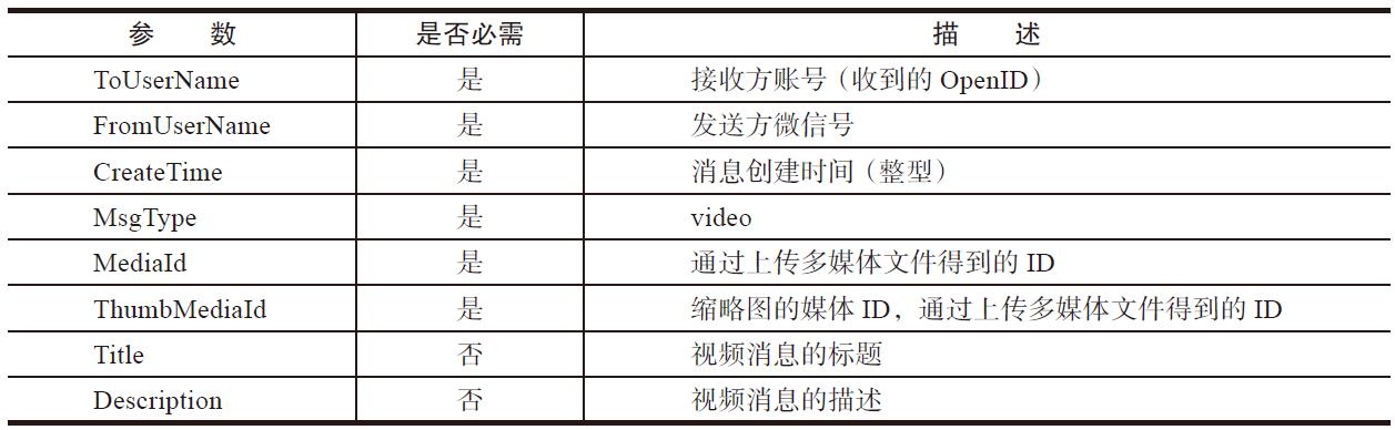 公众号回复的视频消息的参数及描述如表4-10所示。