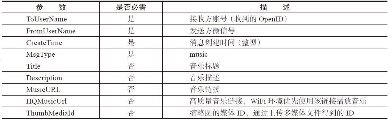 公众号回复音乐消息的参数及描述如表4-11所示。