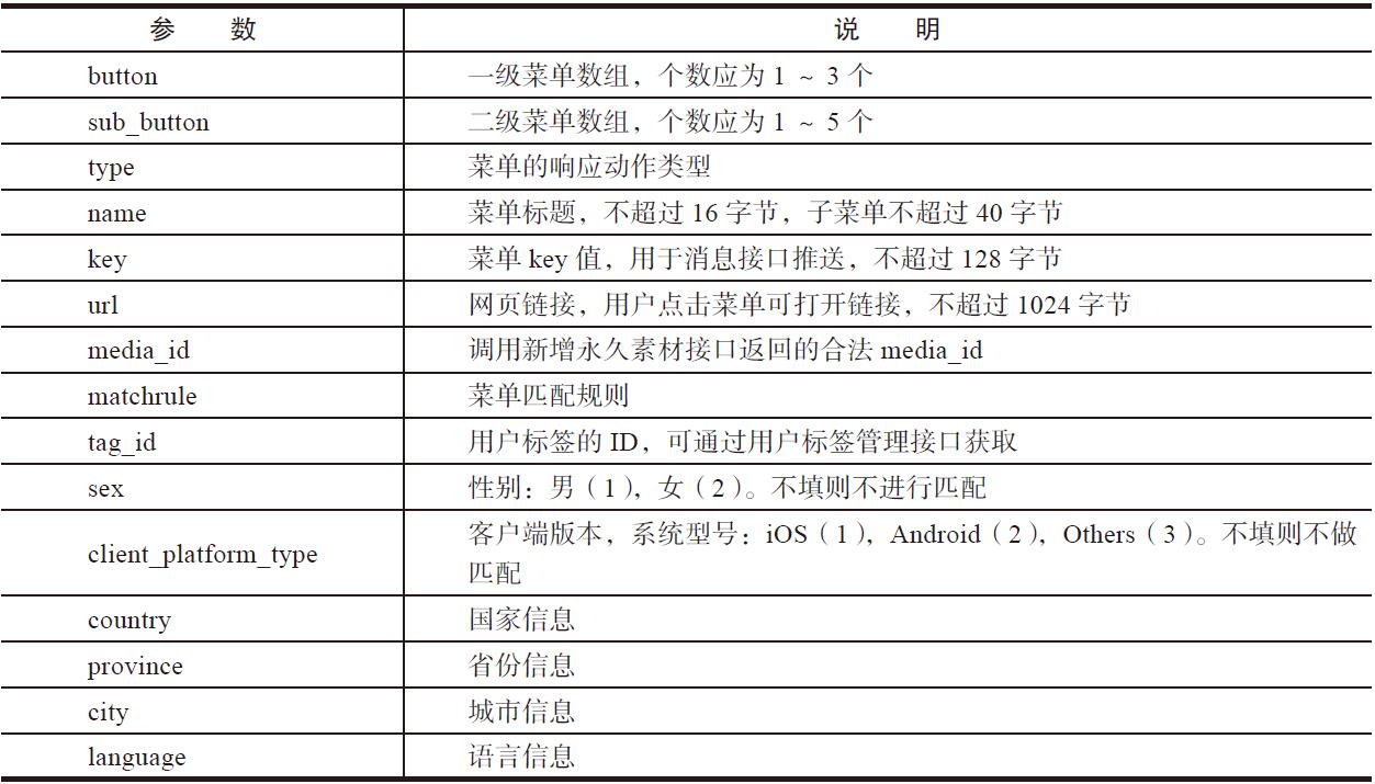 个性化菜单内容的参数说明如表5-4所示。