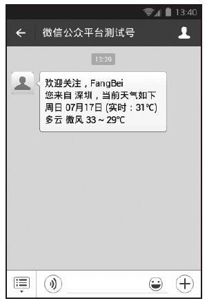 很多公众号在用户关注的时候,会显示出用户的昵称、头像或其他信息。下面以关注的时候向用户提供当地天气预报为例,介绍如何开发个性化欢迎语的功能。
