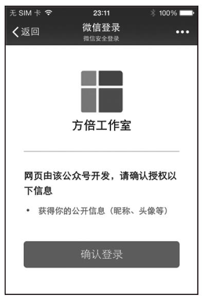 点击“确认登录”按钮,将跳转到oauth2.php页面,程序将获取到code,界面显示效果如图7-6所示。