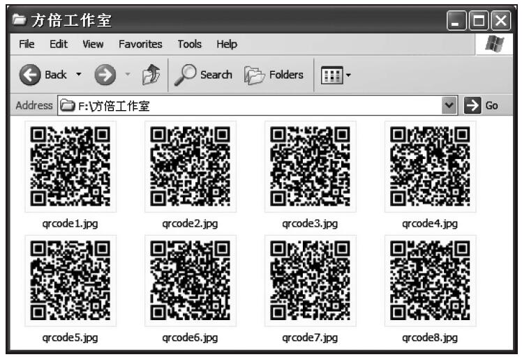 以下代码批量生成了8个二维码,并将其保存在本地。