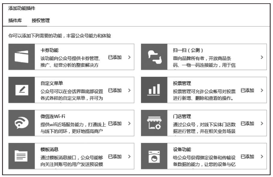 使用模板消息需要先从插件库中申请模板消息功能,插件库如图10-30所示。