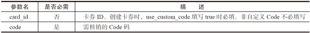 核销Code接口是核销卡券的唯一接口,开发者可以调用当前接口核销用户的优惠券,该过程不可逆。