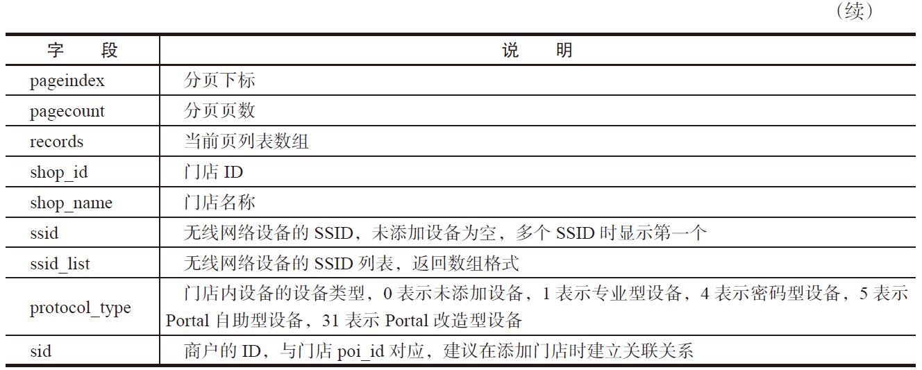 WiFi门店列表包括公众平台的门店信息,以及添加设备后的WiFi相关信息。