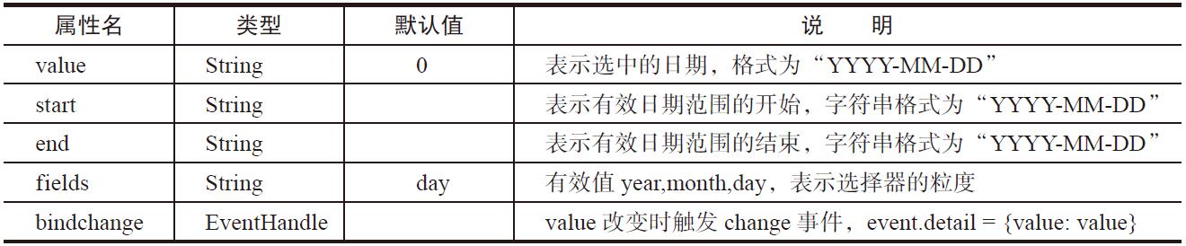 <picker mode="date" start="2015-09-01" end="2017-09-01" bindchange=