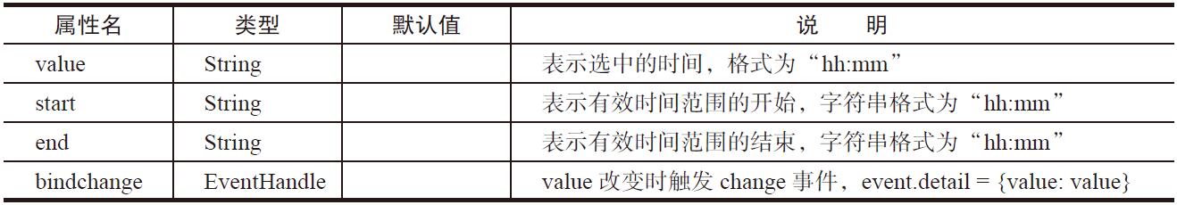 <picker mode="time" start="09:01" end="21:01" bindchange="bind-