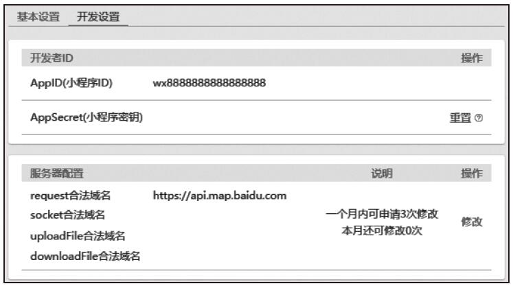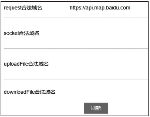 在小程序中,将会向该地址发起请求,需要预先将百度接口所在域名设置到小程序的request合法域名中,如图21-7所示。