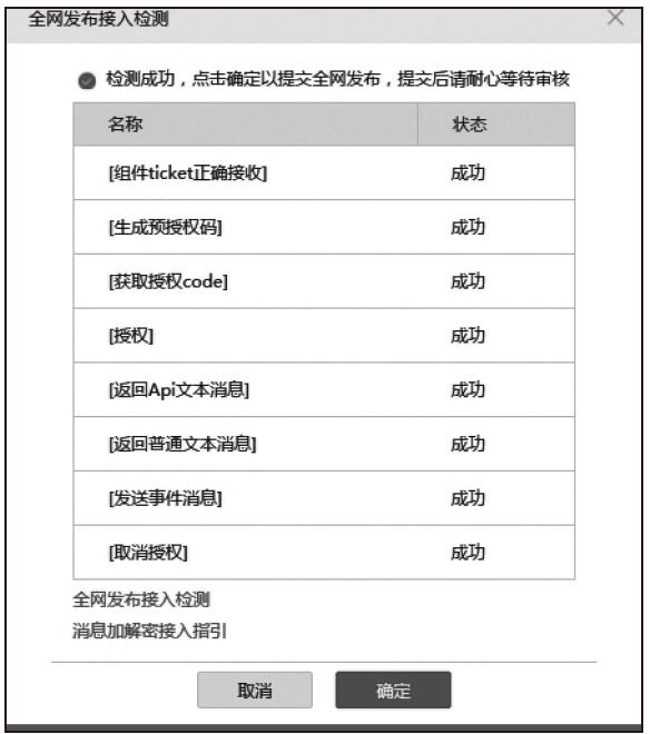 当第三方平台创建成功并最终开发测试完毕,提交全网发布申请时,微信服务器会通过自动化测试的方式,检测服务的基础逻辑是否可用,在确保基础可用的情况下,才会允许公众号第三方平台提交全网发布。