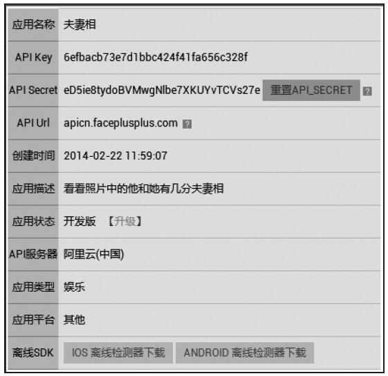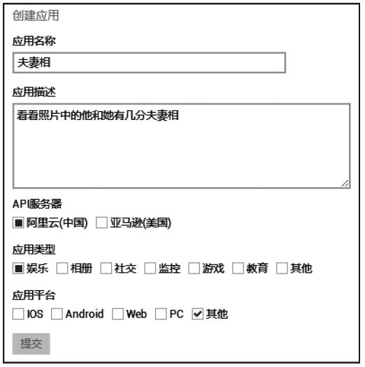下面使用Face++的接口来完成这一功能。使用其接口需要先注册一个Face++账号,账号登录后需要先创建一个应用,如图24-3所示。