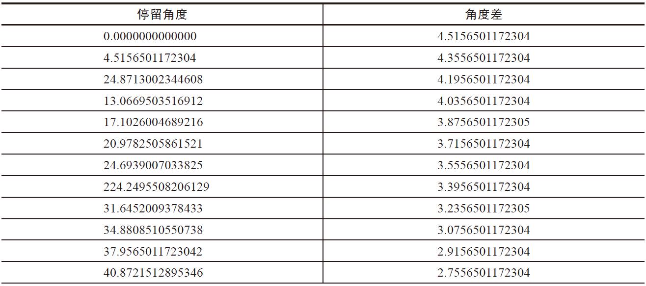 上面代码将生成一个元素个数非常大的角度列表数组,数组存储到steps中。这里为了简便,生成了一个简化版本,如表24-9所示。