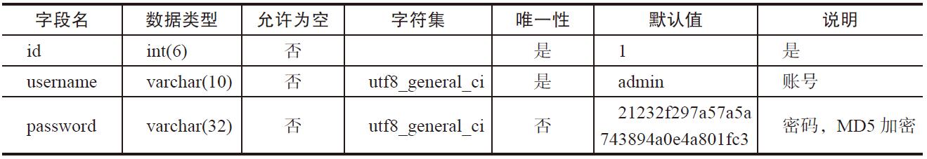 101_admin表的详细信息如表25-1所示。