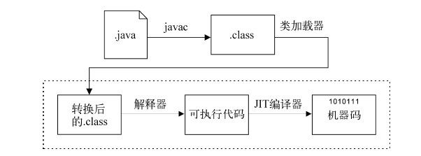 图1-1 Java源码被转换成 .class 文件,在JIT编译前被加载处理