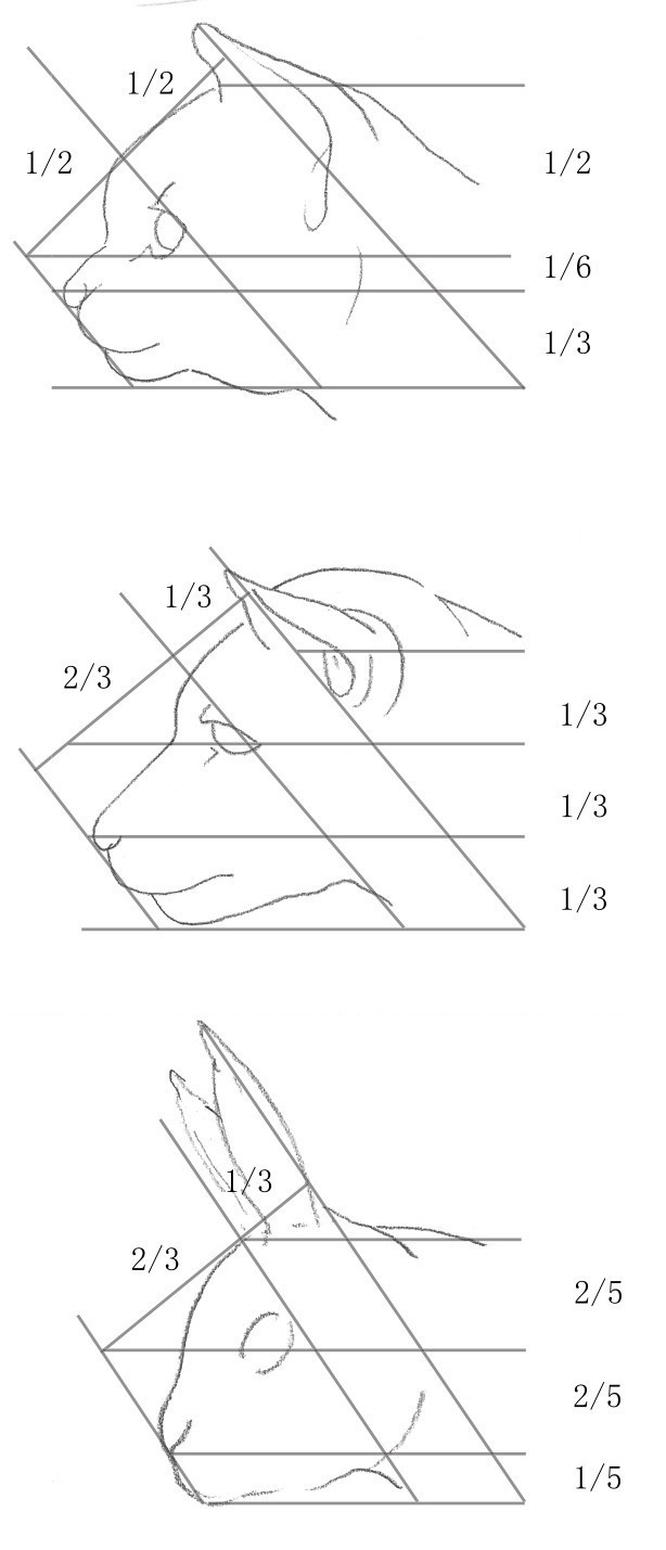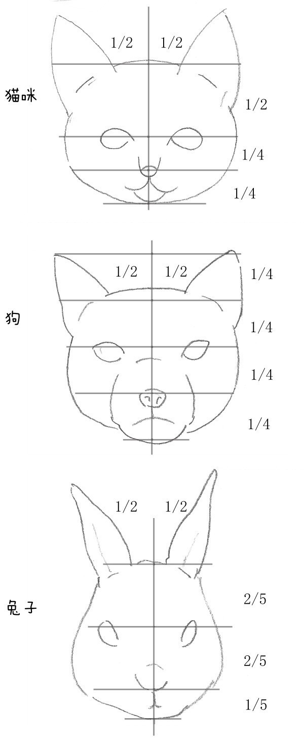 动物的头部大多可以用圆形表现。不同动物的头部比例存在不同的差异。要画动物的头部,就必须了解头部的比例关系。