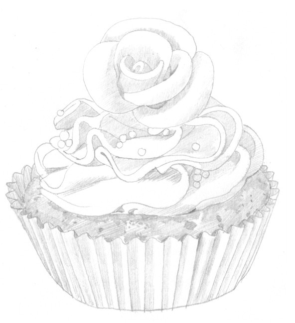 1 简单地勾勒出蛋糕的整体轮廓线,注意蛋糕柔软质感的表现,线条要刻画得流畅。