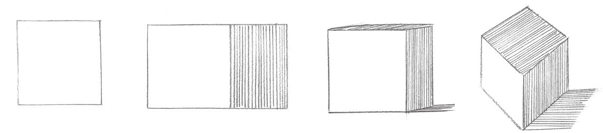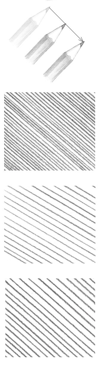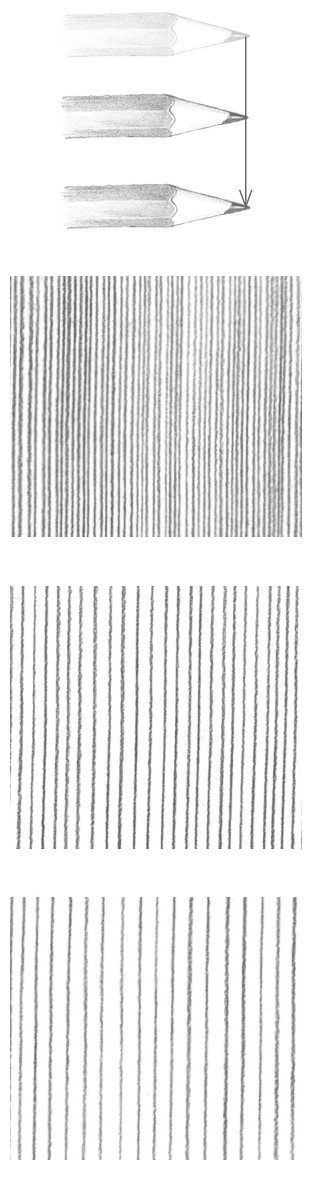 素描中最常用到的线条排列形式是平行直线的排列。较多的直线排列在一起可以形成面,而线条排列的疏密会影响面的颜色变化。绘画时,每条线之间的间距要尽量保持一致。