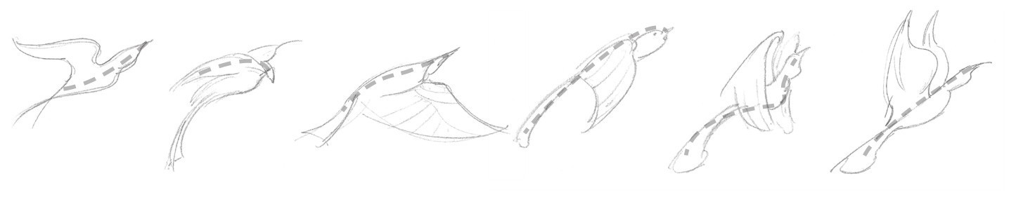 要画好动物的各种动态,头和躯干的关系非常重要。爬行动物的四肢灵活,运动时,前后脚形成不同的形态,表现形式较多。绘画时要注意抓住主要的动势线进行整体的动势绘画。