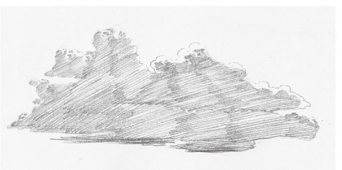 云与天没有明显的区别,有时候天空就是一大片的留白,有时候对天空可以用细密的线条进行刻画,也就有了云朵的造型。用弯曲缭绕的细线可以表现出云朵的动态,层次密集的排线能表现出云朵的厚度与轻柔灵动。