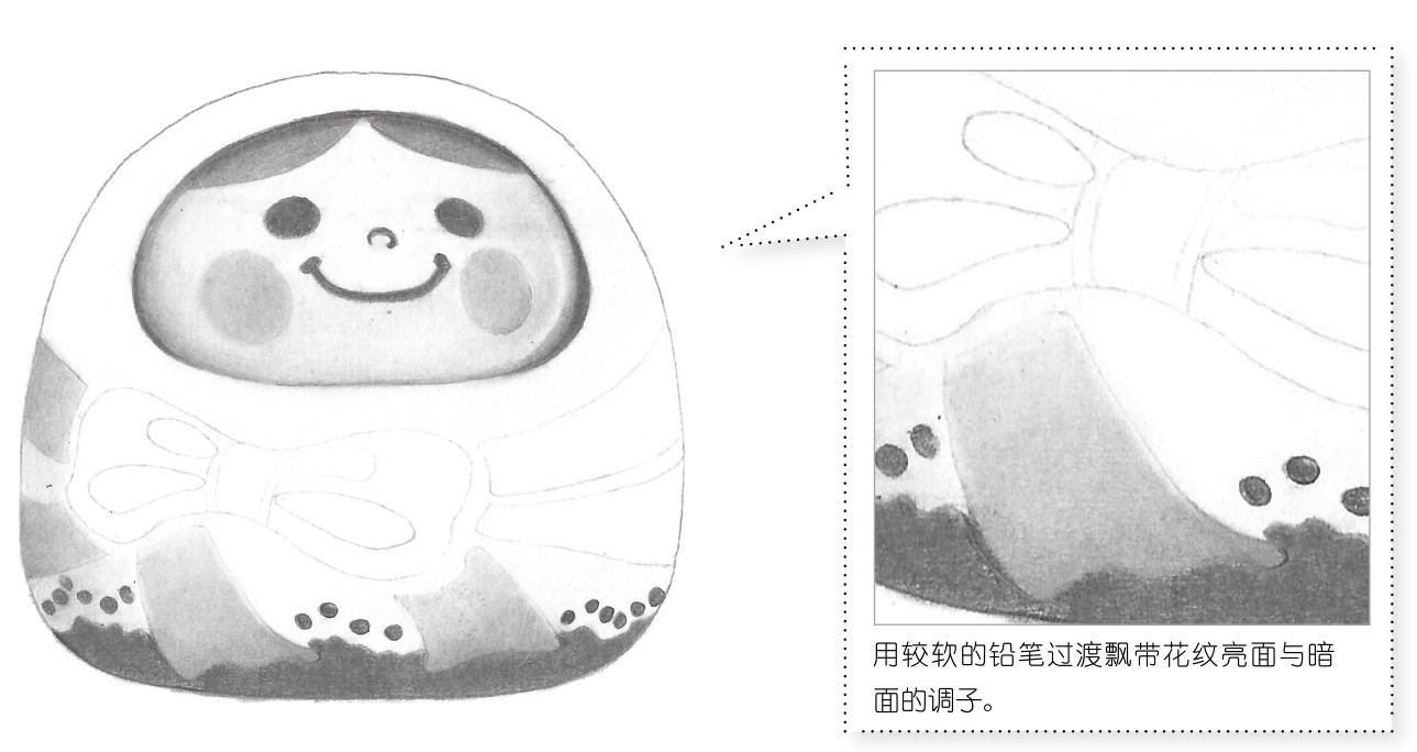 5 用较软的铅笔,简单地铺设出萌物摆件衣服的明暗关系。