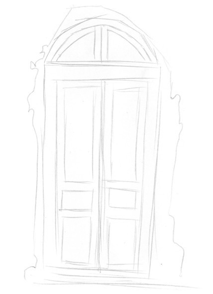 1 用简单的线条勾勒出门的大致比例。