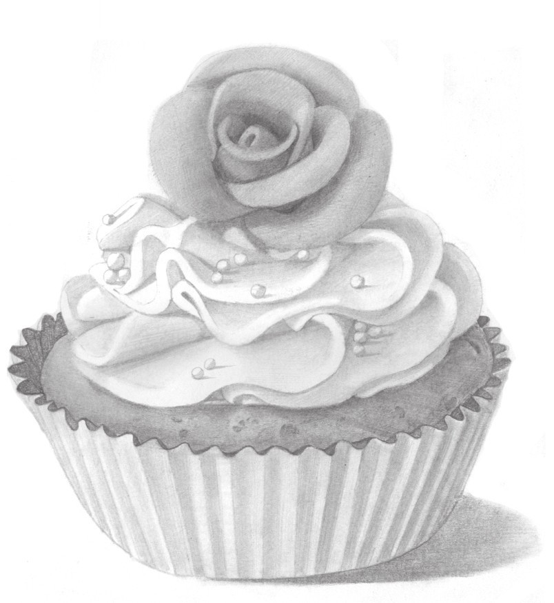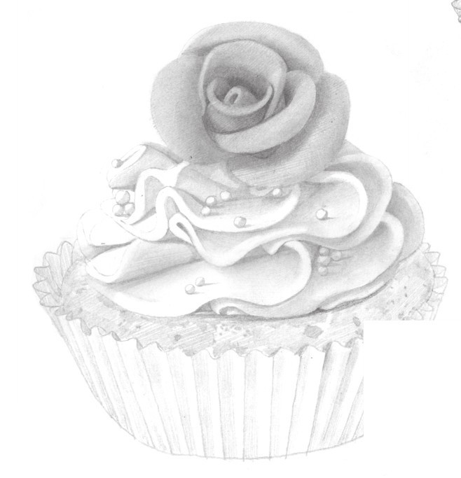 1 简单地勾勒出蛋糕的整体轮廓线,注意蛋糕柔软质感的表现,线条要刻画得流畅。