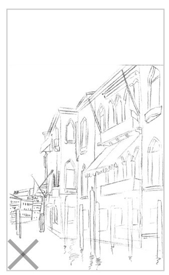 初学者构图时,常常出现构图偏上、偏下、偏大或偏小等画面不均衡的错误。我们可以使用九宫格的方式(如左图所示)对画纸进行均等的分割,将对象合理地安排在画纸中。