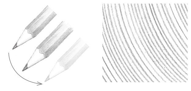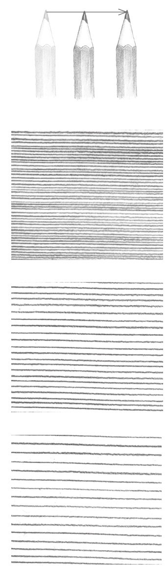 素描中最常用到的线条排列形式是平行直线的排列。较多的直线排列在一起可以形成面,而线条排列的疏密会影响面的颜色变化。绘画时,每条线之间的间距要尽量保持一致。