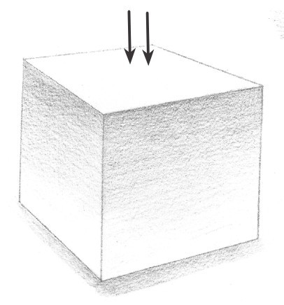物体通过不同方向的光影照射会产生不同的画面效果。要想运用光影来表现物体的立体感,就要知道光影的变化规律。从左、右、顶面,全方位地细心观察(如下图),就能很容易从光的强弱变化、角度的变化中得出体积变化的基本规律。