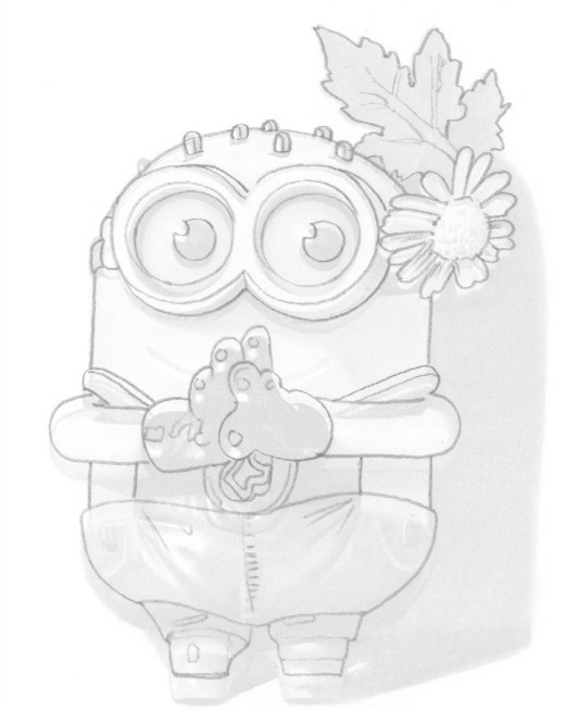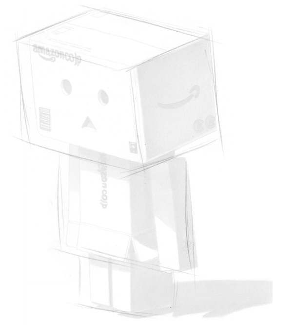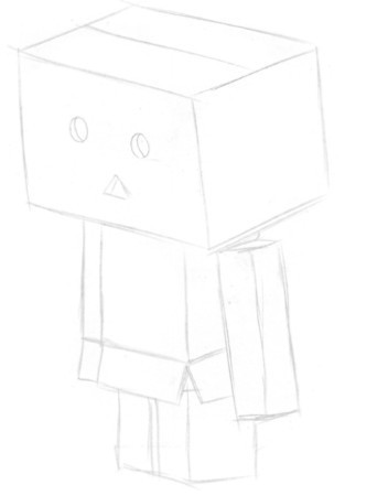 2 根据第1步的轮廓,细致地勾勒出纸盒公仔的具体轮廓