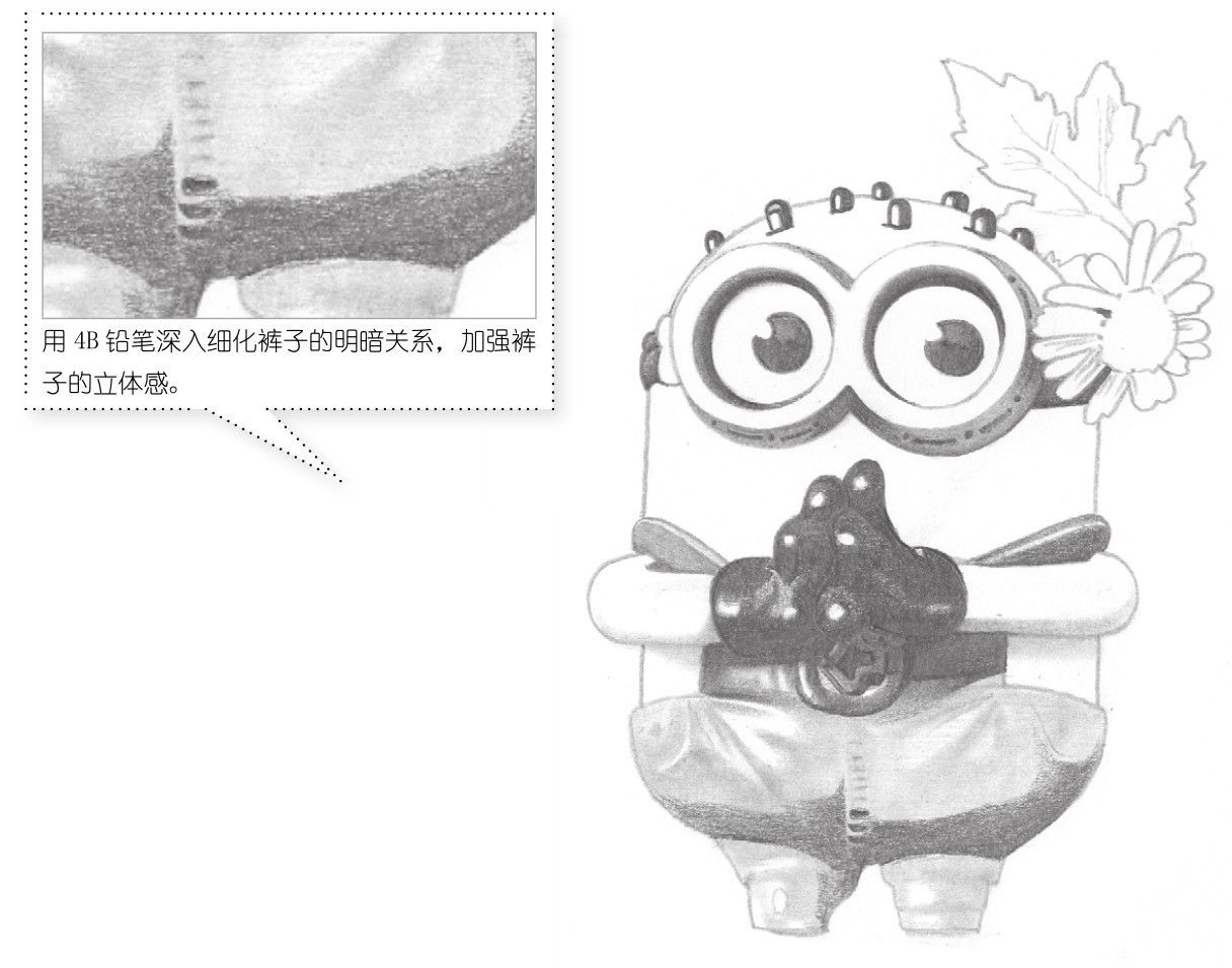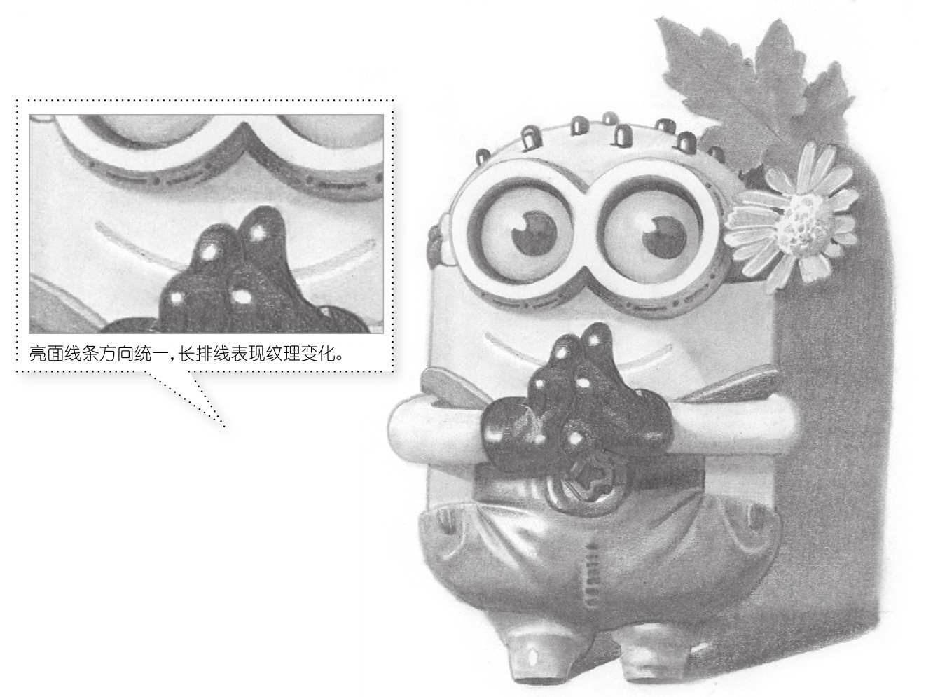 5 用较软的铅笔,简单地铺设出萌物摆件衣服的明暗关系。