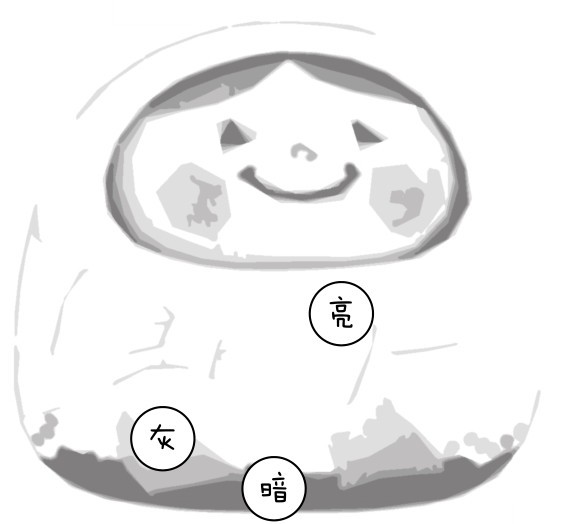 4 套娃的脸部处于视觉中心点的位置,因此要先绘制脸部的暗面调子。