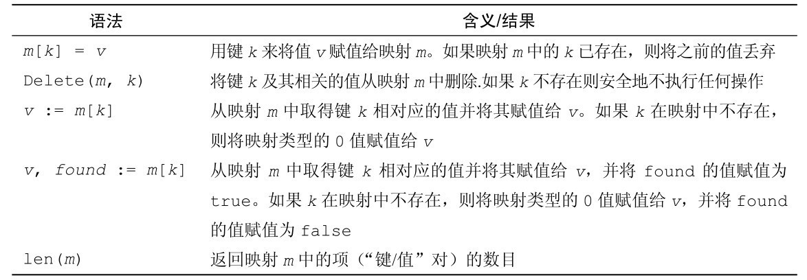 除了值和指针之外,Go语言也有引用类型(另外Go语言还有接口类型,但在大多数实际使用中我们可以把接口看成某种类型的引用,引用类型将在本书稍后介绍,参见6.3节)。一个引用类型的变量指向内存中某个隐藏的值,它保存着实际的数据。保存引用类型的变量传递时也非常廉价(在64位机器上一个切片占16字节,一个映射占8字节),其使用语法与值一样(我们不必取得一个引用类型的地址,在需要得到该引用所指的值时也无需解引用它)。