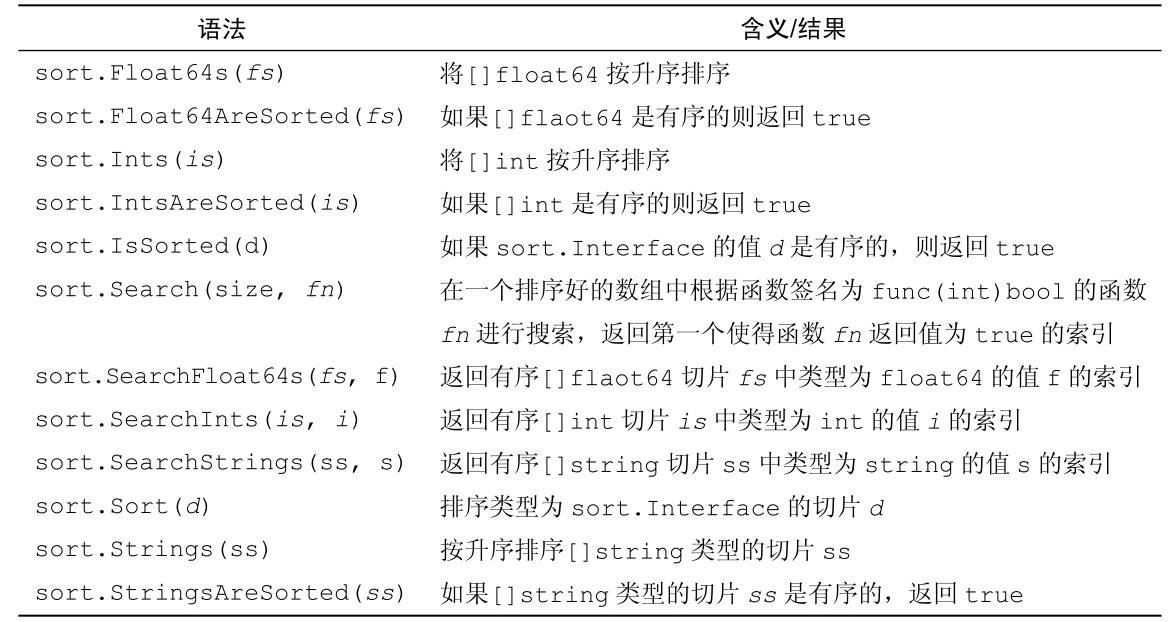 本章的其他节将深入讲解Go语言内置的集合类型。其中包含了Go语言的所有内置类型:数组、切片和映射。这些类型功能齐全并且高效,能够满足大部分需求。标准库中也提供了一些额外的更加特别的集合类型container/heap、container/list和container/ring。这些类型可能在某些特殊情况下更高效。后续章节中有些关于使用堆和列表的小程序(参见9.4.3节)。第6章有个例子,展示了如何创建一个平衡二叉树(参见6.5.3节)。