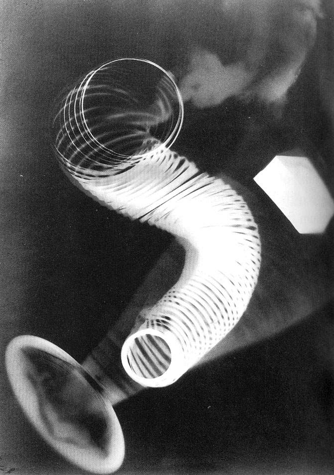曼·雷 Man Ray Solarization 1929 Gelatin silver print.Untitled(Wire Spiral and Smoke),1923,Gelatin silver print.莫霍伊—纳吉László Moholy-Nagy Photogram,n.d. Gelatin silver print.罗德钦科Alexander Rodchenko Montage,c.1923.哈特菲尔德John Heartfield Adolfthe Superman;He Eats Gold and Spews Idiocies,1932.布拉加利亚Anton Giulio Bragaglia The Smoker,1913.[8]