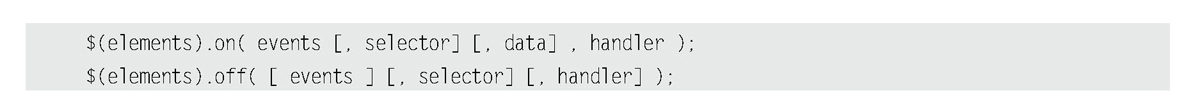 新的on和offAPI统一了jQuery中所有对文档绑定事件的操作,而且它们也更加简短。代码如下: